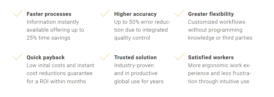 xMake’s flexibility stands out: it is mobile, needs only Wi-Fi and is adaptable to the worker’s language and qualifications. The intuitive user interface does not only grant a high user acceptance among employees, it also allows on-thejob training of new workers.